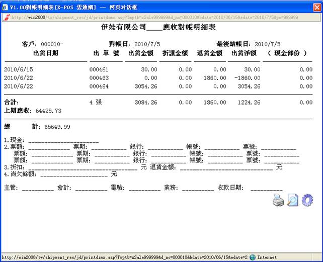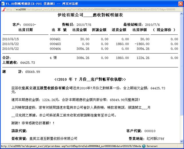 1-7.若輸入對帳客戶代號;000010,如圖: