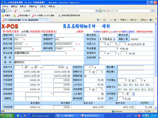 首先建立新的商品資料:登錄