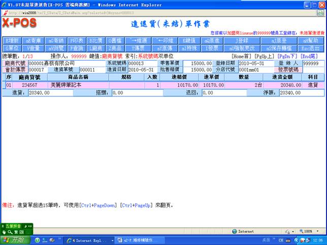 轉進貨完畢後,您可進入