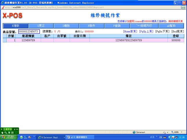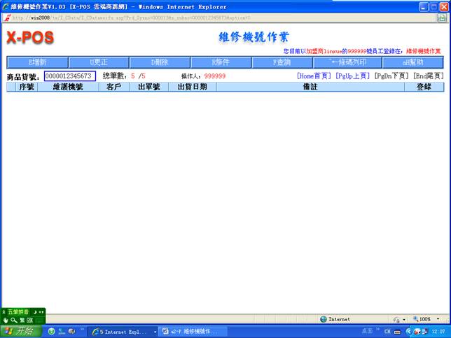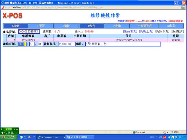 7-5、下圖是已完成好“維修機號作業”商品的記錄,如將另一件也記錄進去您只需要選擇“