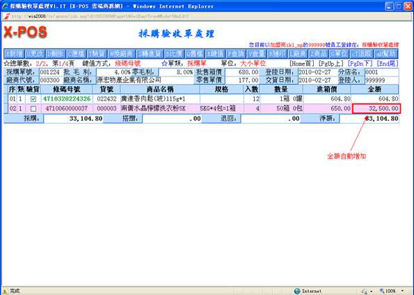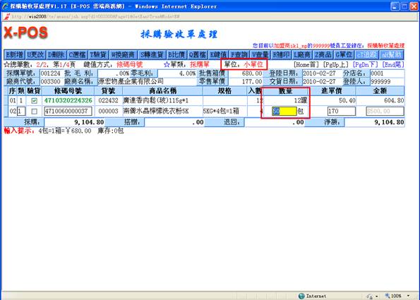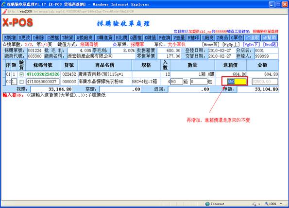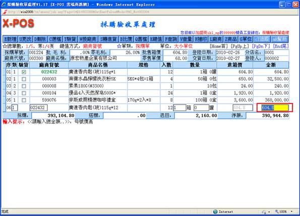 頁面中,可以修改進單價與金額;
