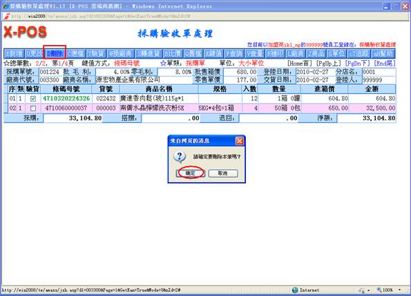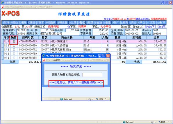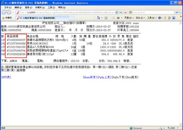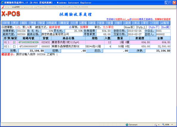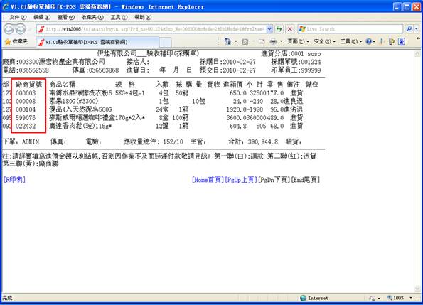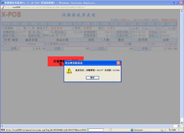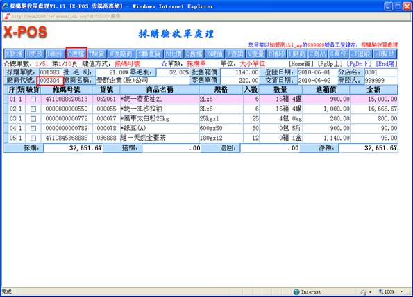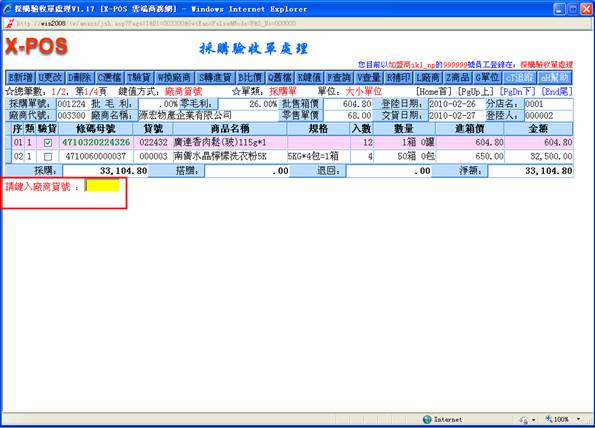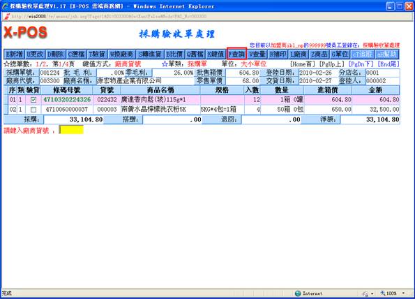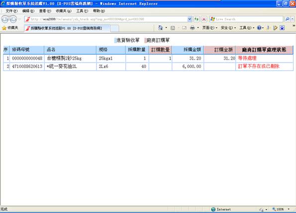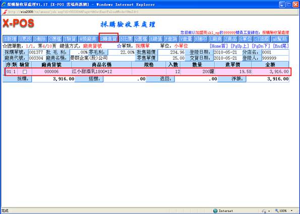 鍵,只有己通過驗收之商品才轉進進貨單,其余商品保留採購單。若單擊