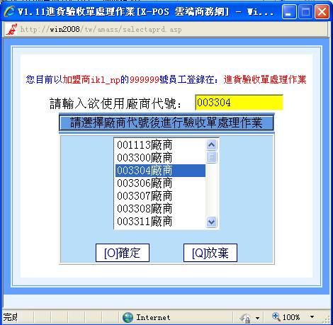 6-3.選擇你要進入的廠商,後雙擊確認。這時返回到主頁面,進入的是您所要的爲之驗收處理作業的廠商主頁面。如圖