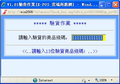 7-2.輸入驗貨的商品條碼,不足13位驗貨商品條碼自動補零,如輸入條碼為:4710088620613