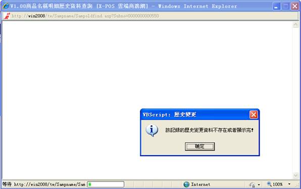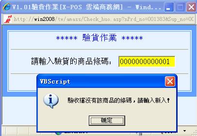 3-6 -2:輸入值不符合各條件,即庫中沒有這種商品時,將彈出提示,例如輸入000001,後按