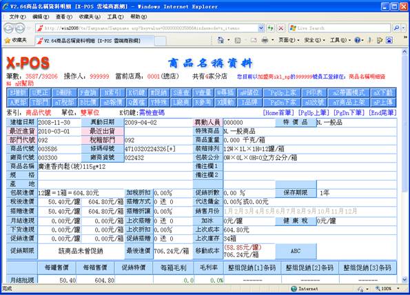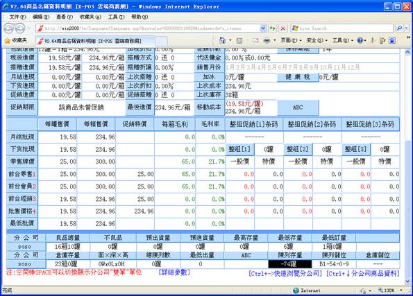 顯示該商品名稱明細資料。具體操作可查看"Z商品"的幫助。