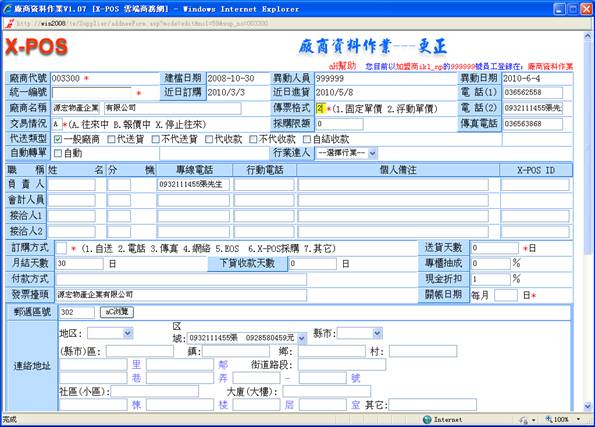 顯示該進退貨單商品對應的廠商資料。具體操作可查看"L廠商資料作業"的幫助。