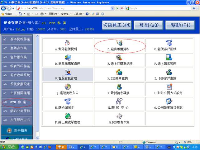 测试環境:廠商報價資料接收作業測試,內網使用ikl_np用戶登錄。
