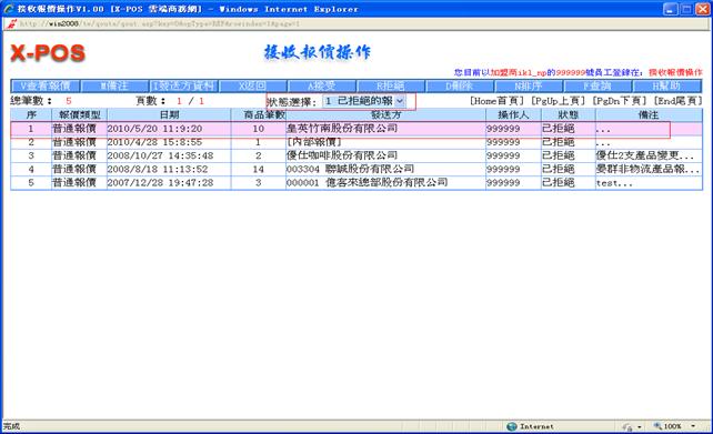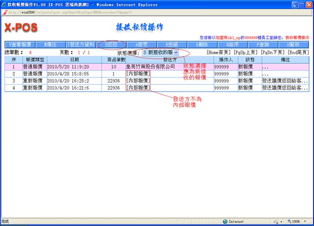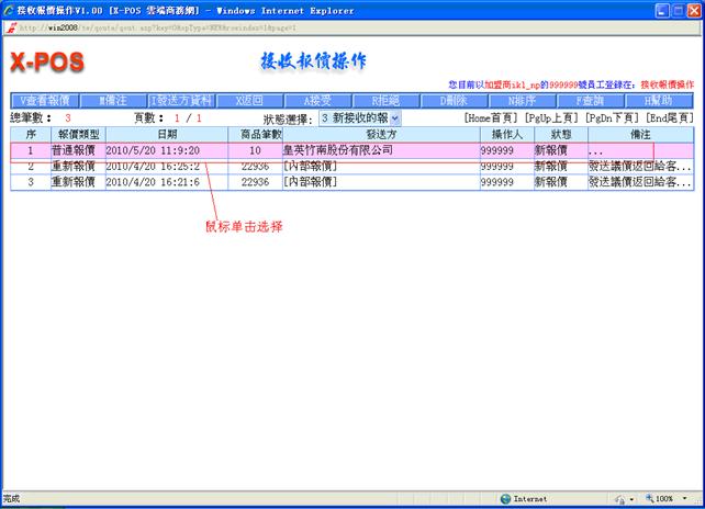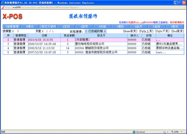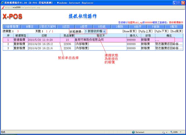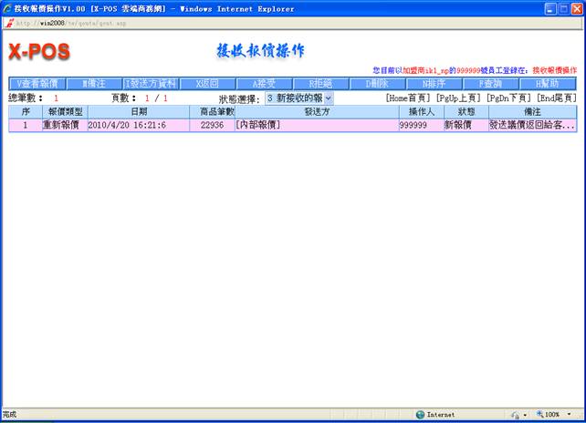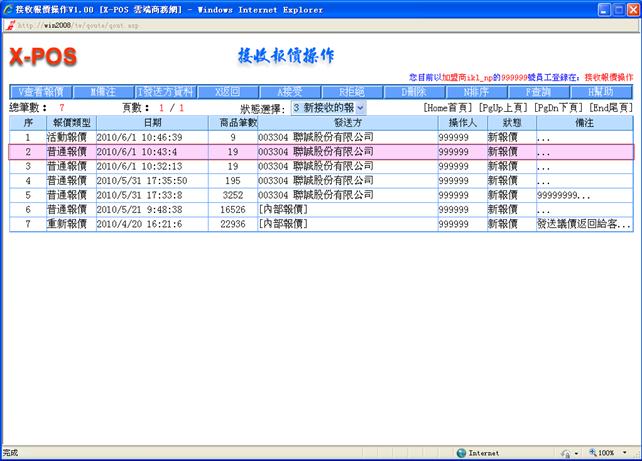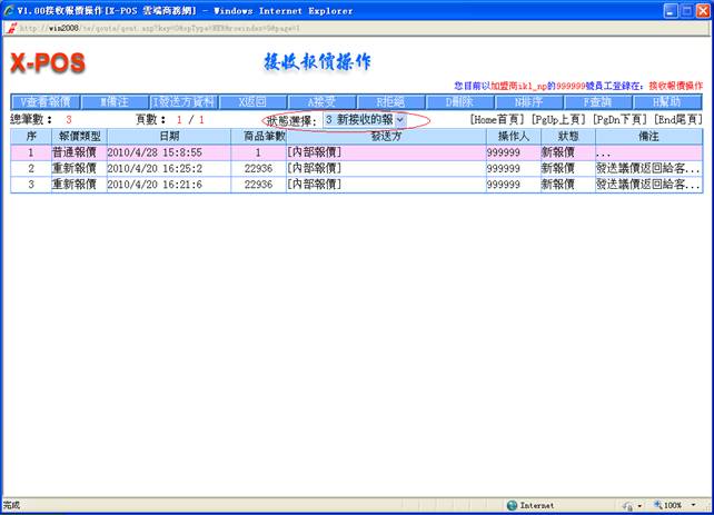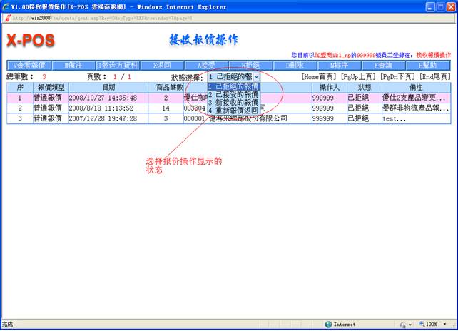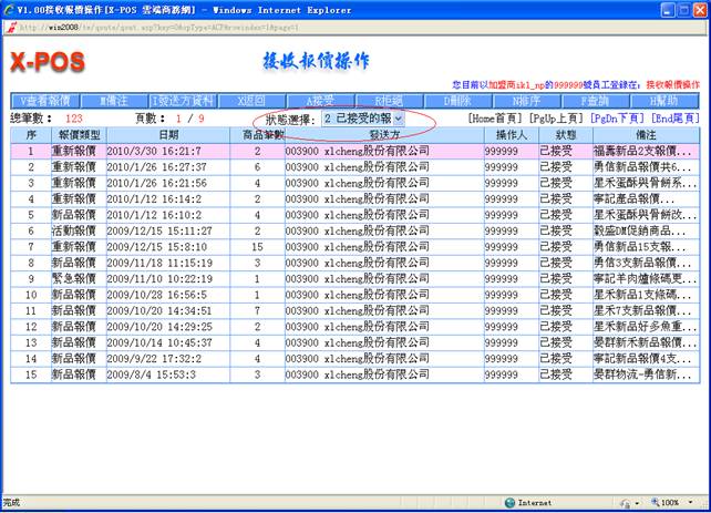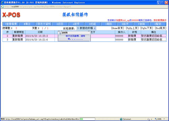 廠商報價作業是對報價的管理,包裹已拒絕、已接受、新接收、重新返回報價的報價。選擇不同報價的狀態,可以進行不同操作,目前包裹查看報價、發送方資料、接受、返回、拒絕、刪除等。