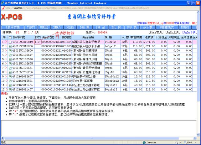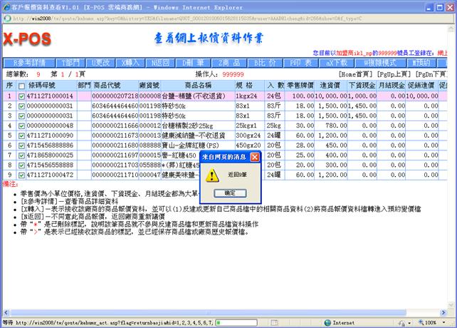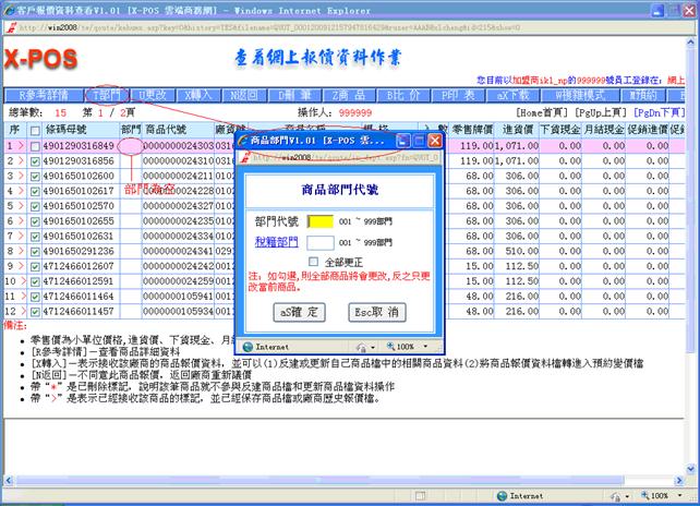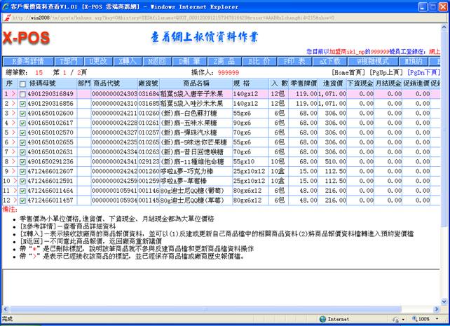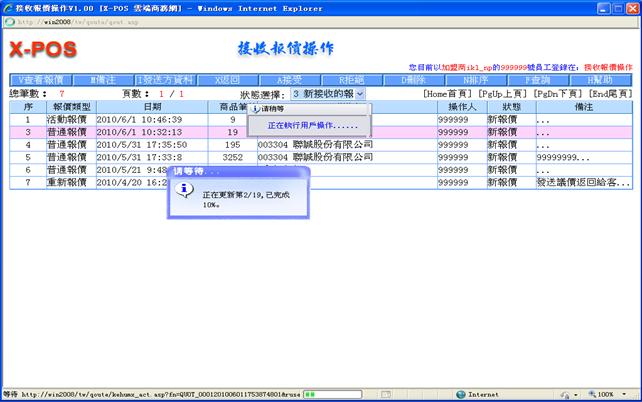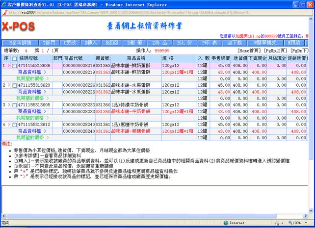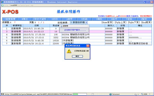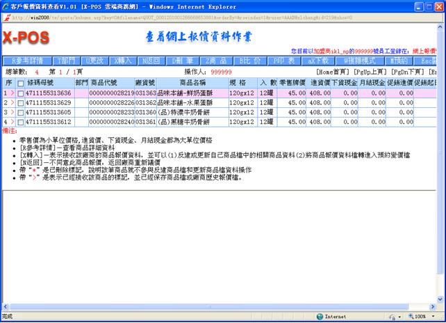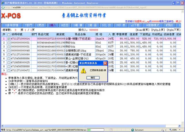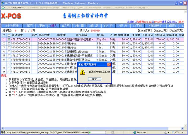 :表示接收該廠商的商品報價資料,並可以(1)反建或更新自己商品檔中的相關商品資料(2)將商品報價資料檔轉進入預約變價檔。