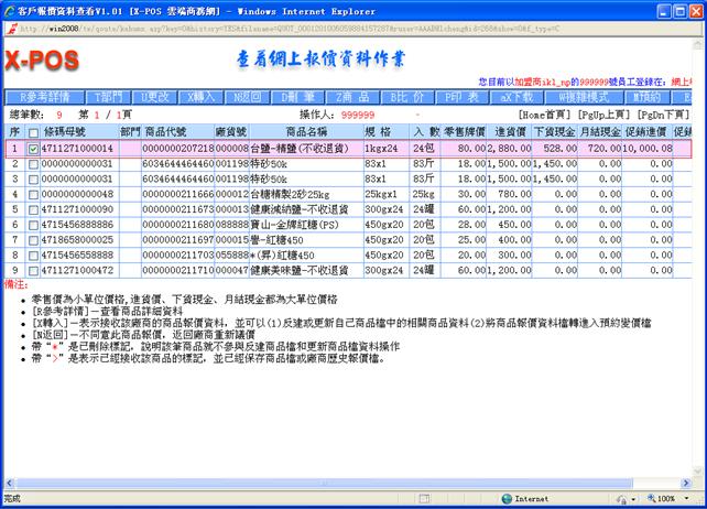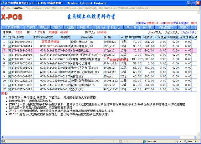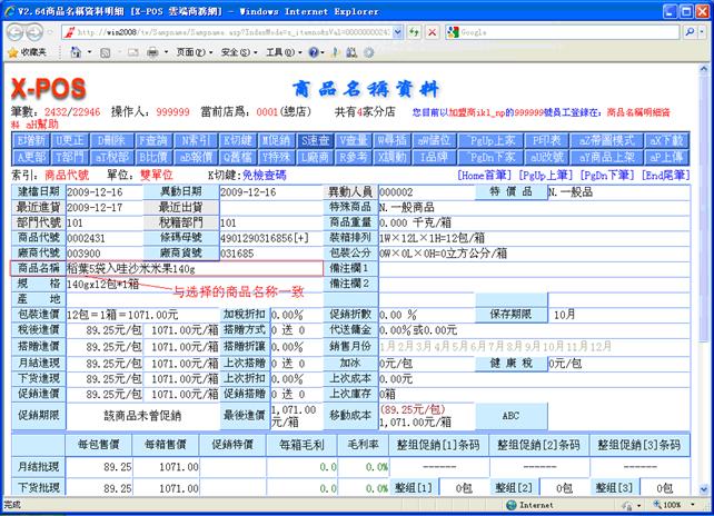 或雙擊指定的數據)查看商品的詳細資訊。如有則顯示商品詳細資訊。如下圖: