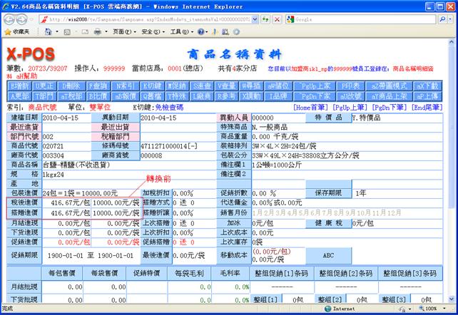 )查看此商品的商品檔。下圖分別是轉入的前後的對比。