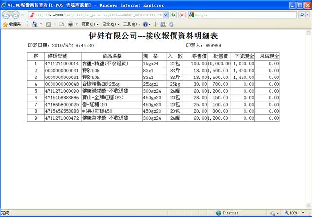 或雙擊一條數據)來查看商品報價明細。結果如下圖: