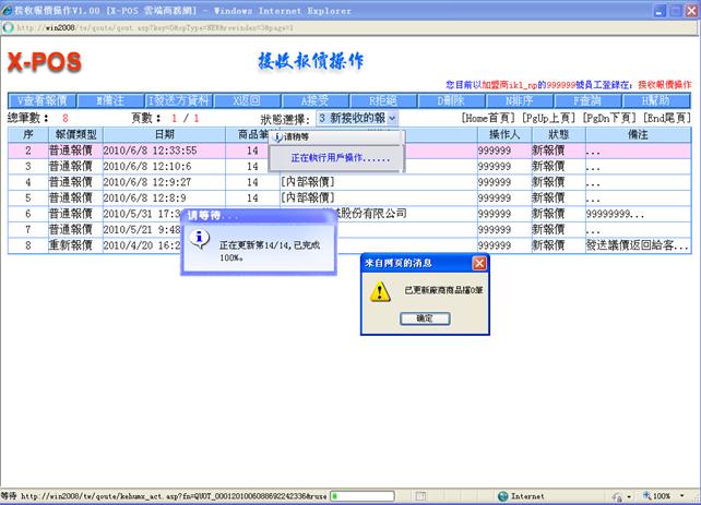 9-3.選擇是,則報價信息將被刪除轉入歷史檔,如下圖: