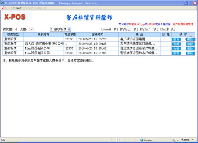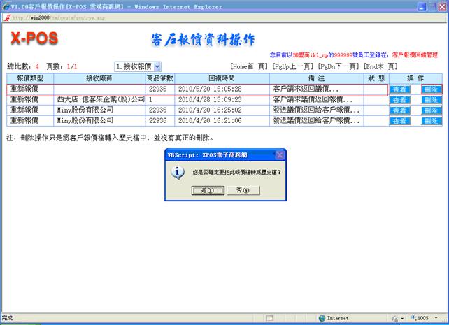 :刪除報價信息只是將客戶報價檔轉入歷史檔中,並沒有真正的刪除。如下圖: