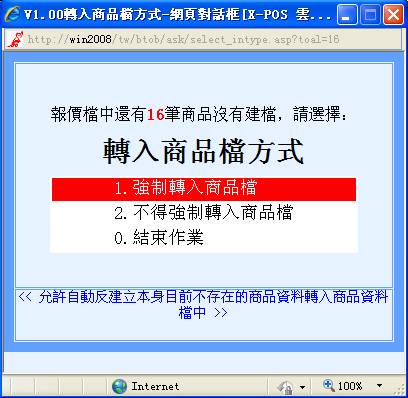 (1)“1.強制轉入商品檔”:允許自動反建立本身目前不存在的商品資料轉入商品資料檔中。