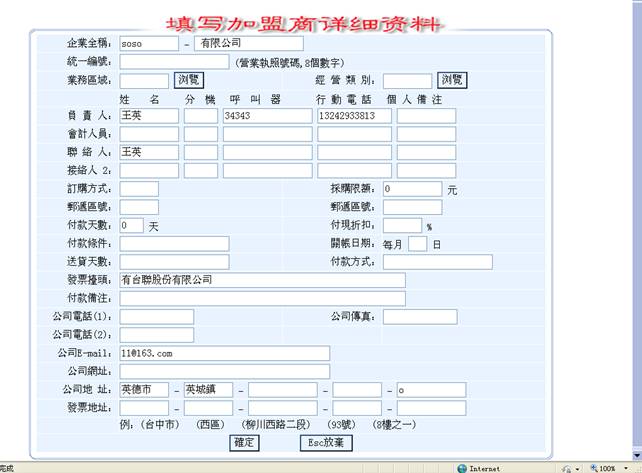 11-4.將所有信息填寫完畢後,點擊存檔資料存入廠商資料,點擊放棄則本次操作無效。點擊