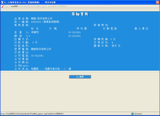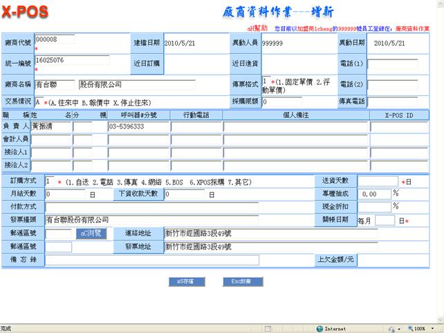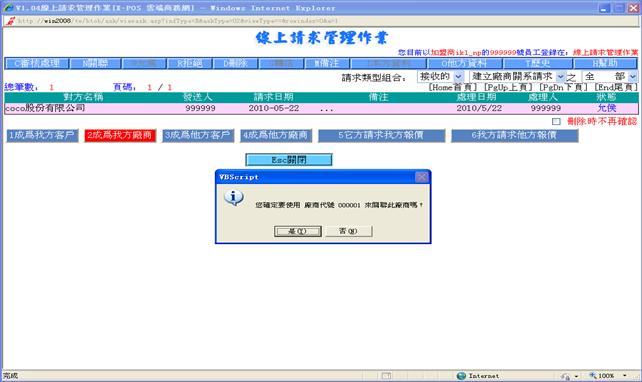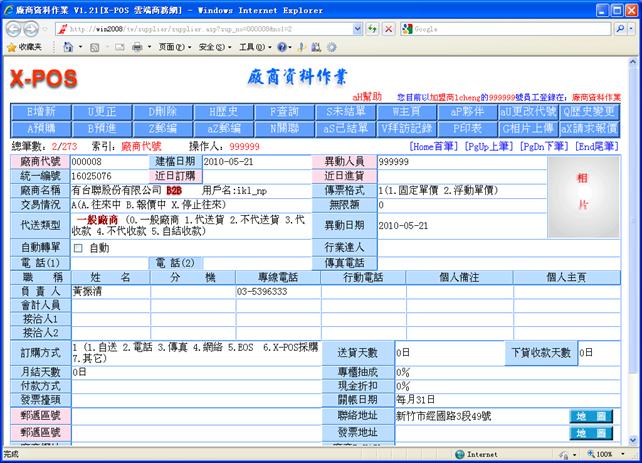 :當廠商資料或客戶資料是採用手動添加的方式時,由于加入的這筆資料未經過X-POS的驗證,因此這筆資料是不能應用于X-POS的B2B作業。當此筆資料對應的廠商或客戶可以已經加盟了X-POS,那 您就需要把您的廠商或客戶和對應的資料[關聯]起來,這樣您就可以和您的廠商或客戶進行B2B操作了。