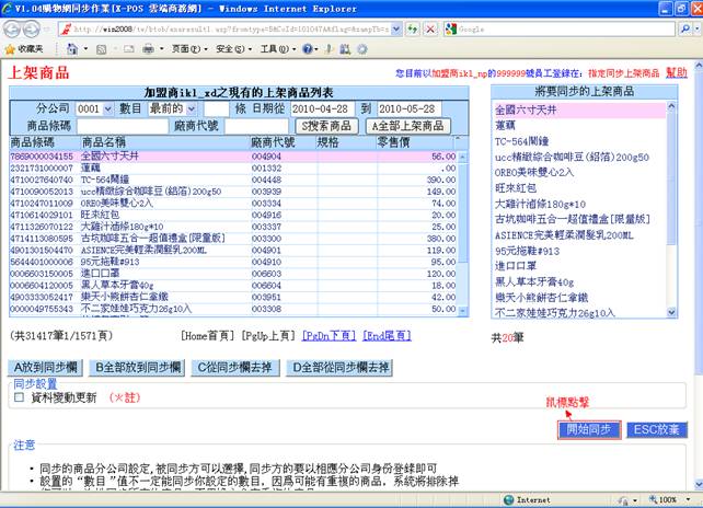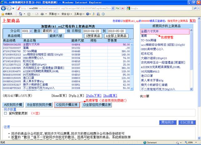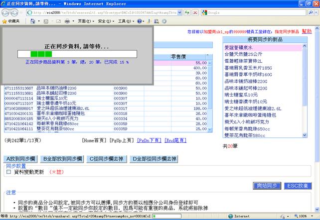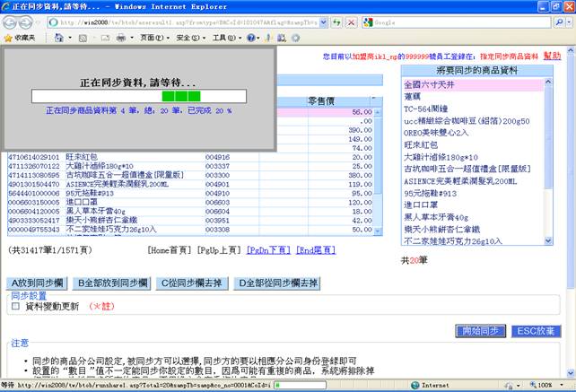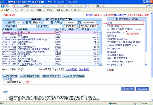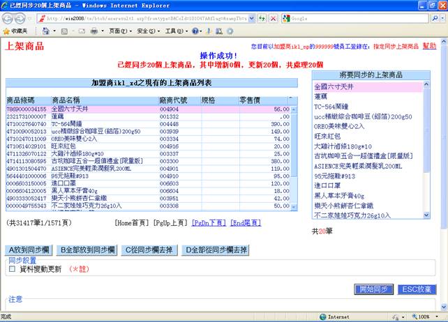 ),商品資料就會自動添加右邊的將要同步的商品資料欄裏。