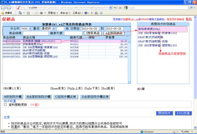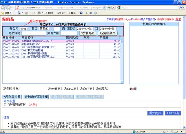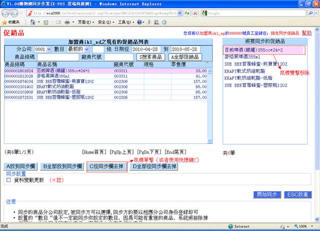 ),商品就會自動添加右邊的將要同步的促銷商品欄裏。
