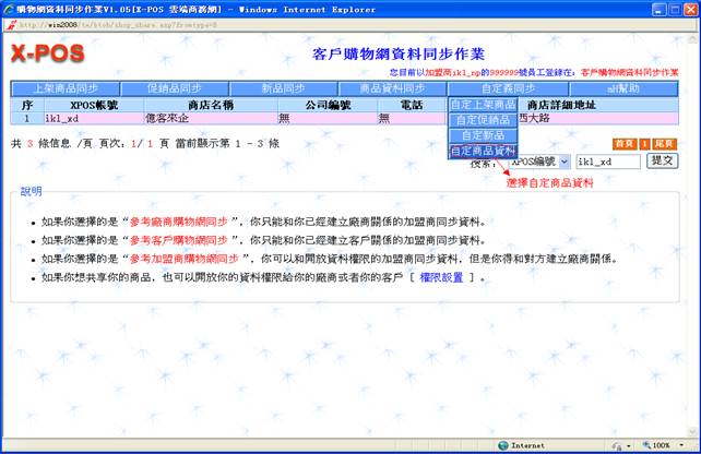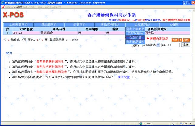 參考客户購物網同步是你和你已經建立客户關係的加盟商同步資料。目前包括上架商品同步、促銷商品同步、新品同步、商品資料同步、自定義同步(自定上架商品、自定促銷商品、自定新品、自定商品資料)。