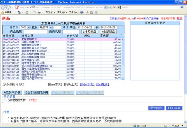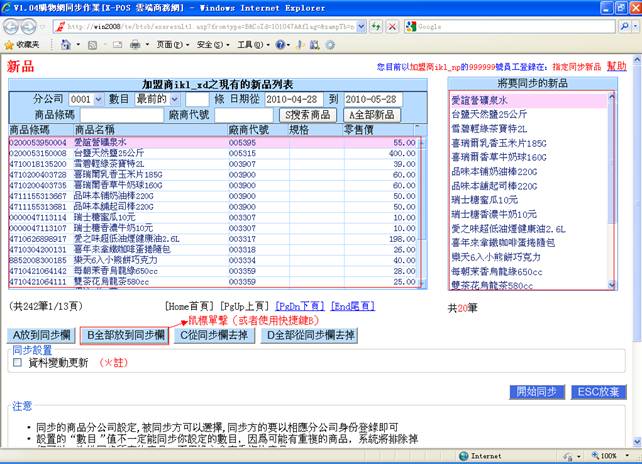 ),新品就會自動添加右邊的將要同步的新品欄裏。
