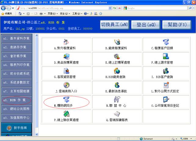 测试環境:購物網同步-參考加盟商購物網同步測試,內網使用ikl_np用戶登錄。
