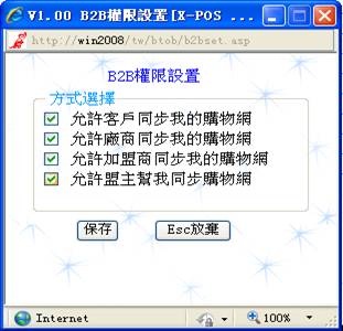在左上角选择‘接受B2B商店’,再选择查询条件的类型,有“X-POS用户、商店、供應、商品、新品、促銷品、條碼、行業、電話、傳真、負責任、地址、郵編、聯盟”,然後輸入關鍵字,點擊搜索。在下面的商店列表中找到你想建立關係的商店。如下圖: