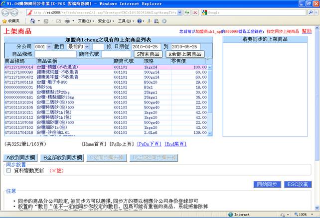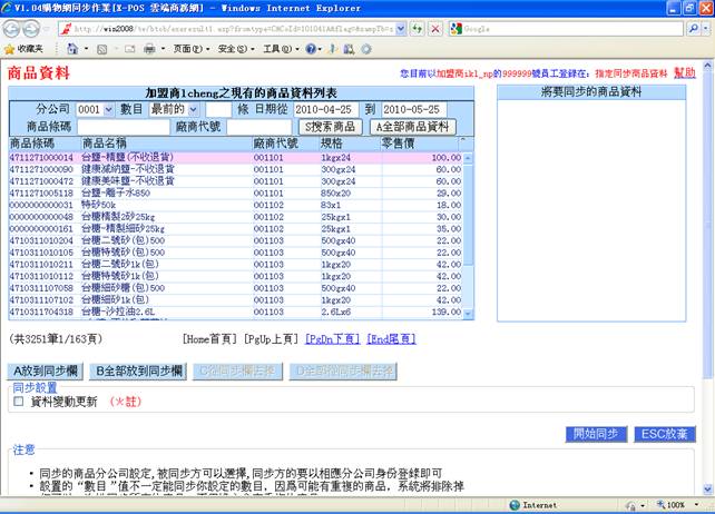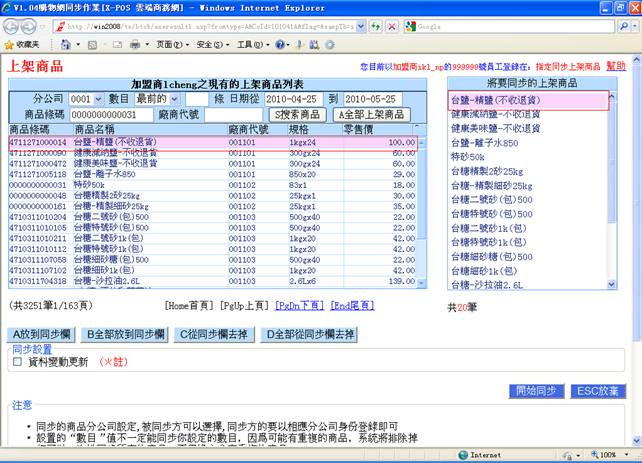 參考廠商購物網同步,你可以和開放資料權限的加盟商同步資料,但是你得和對方建立廠商關係。