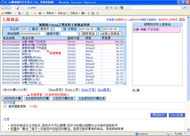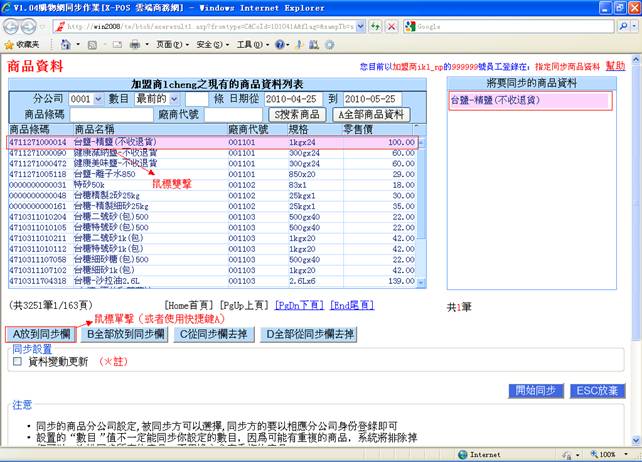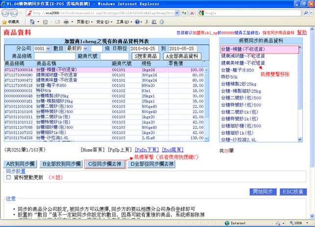 ),商品資料就會自動添加右邊的將要同步的商品資料欄裏。