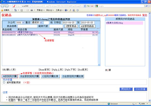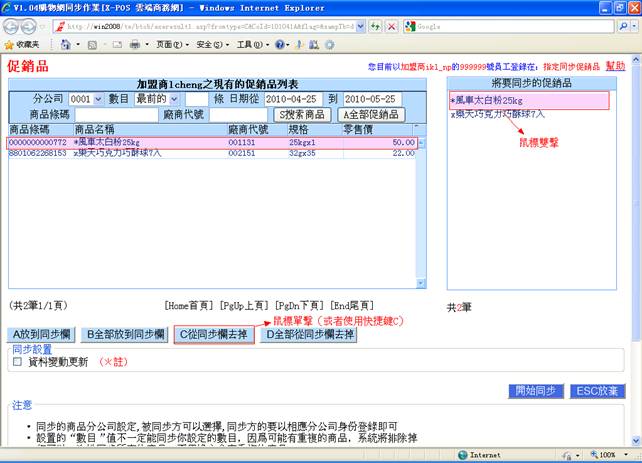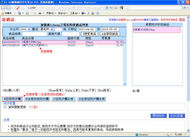 ),商品就會自動添加右邊的將要同步的促銷商品欄裏。