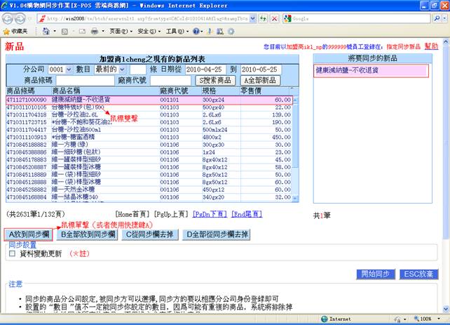 ),新品就會自動添加右邊的將要同步的新品欄裏。