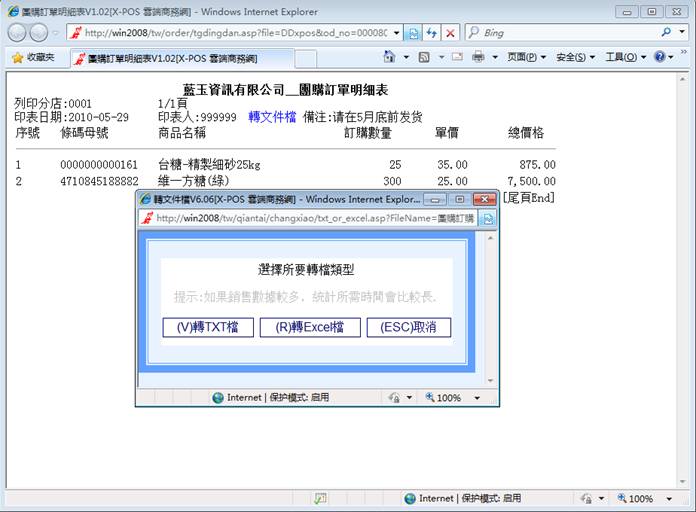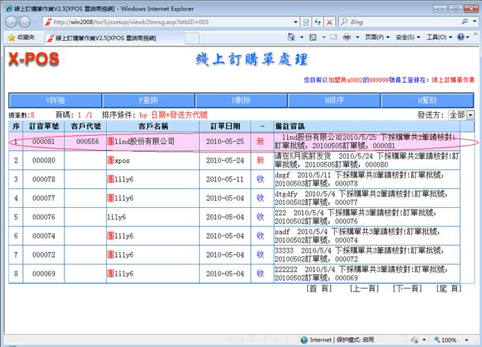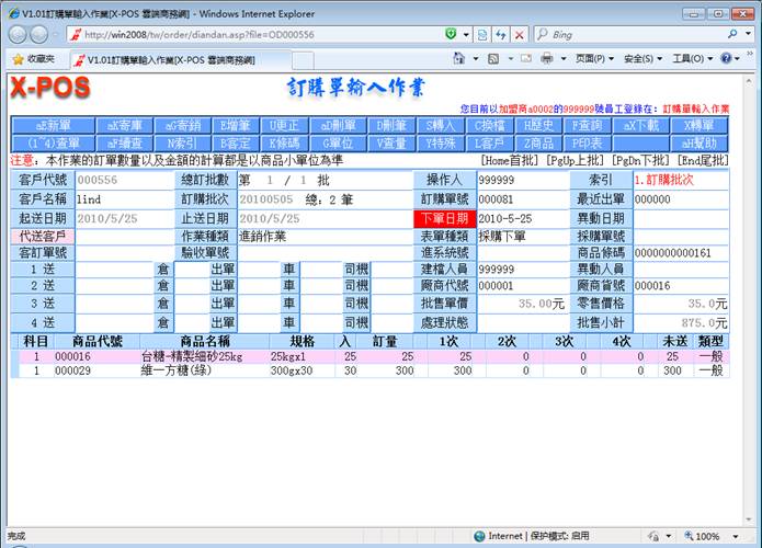具體操作方法見 “訂購單輸入作業”測試報告