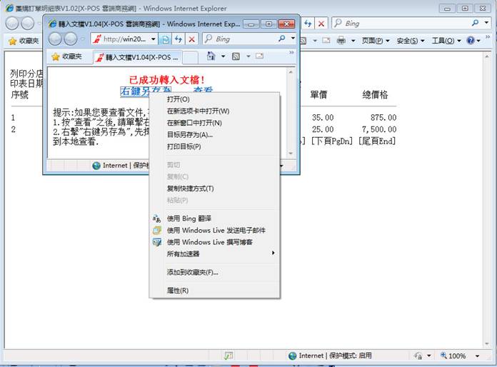 瀏覽器:IE 8.0