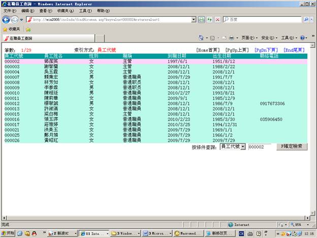 )查找在職員工資料
