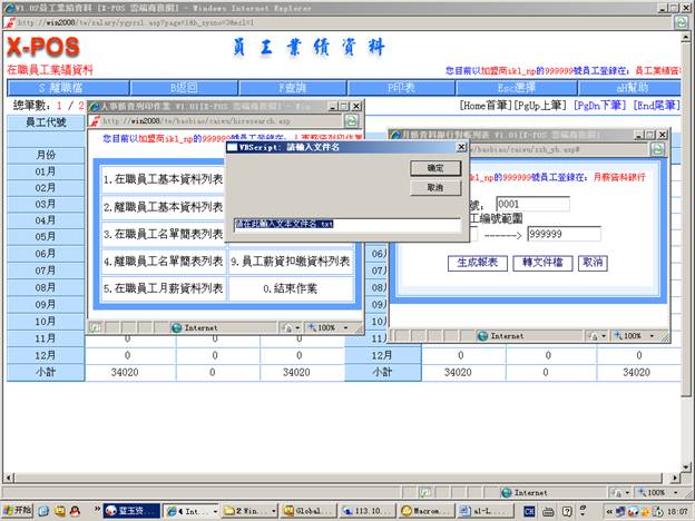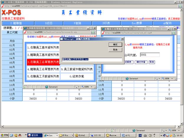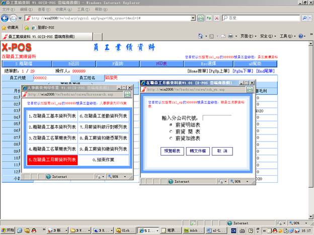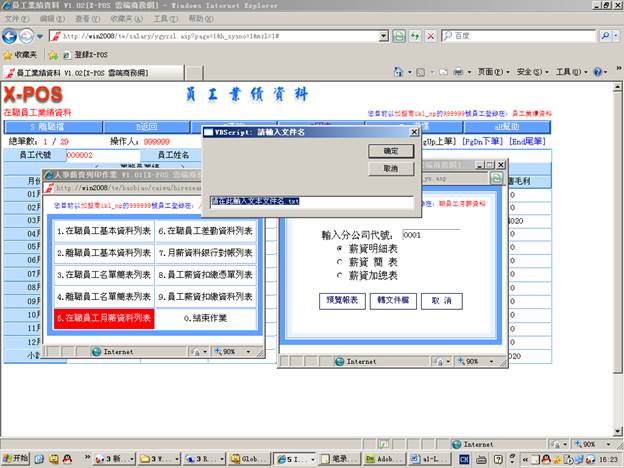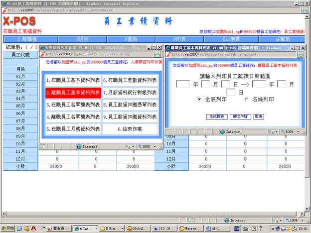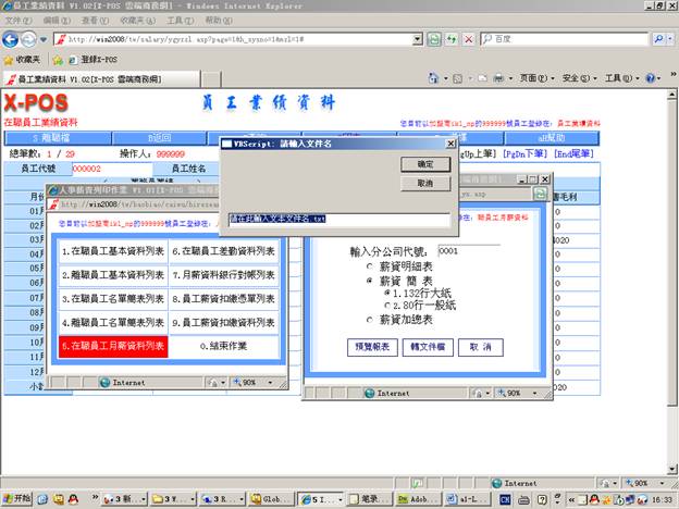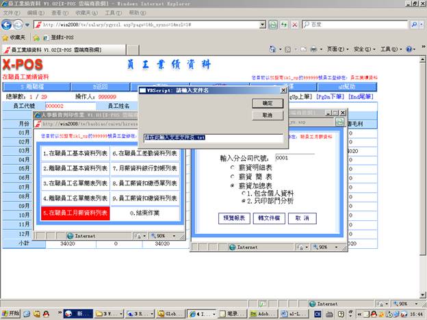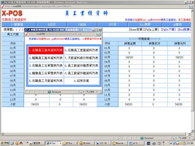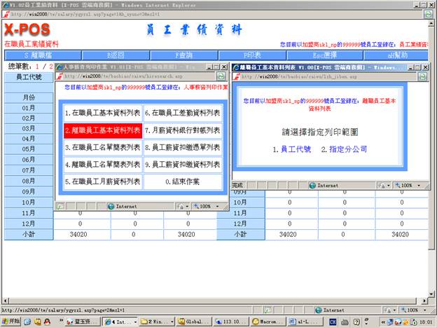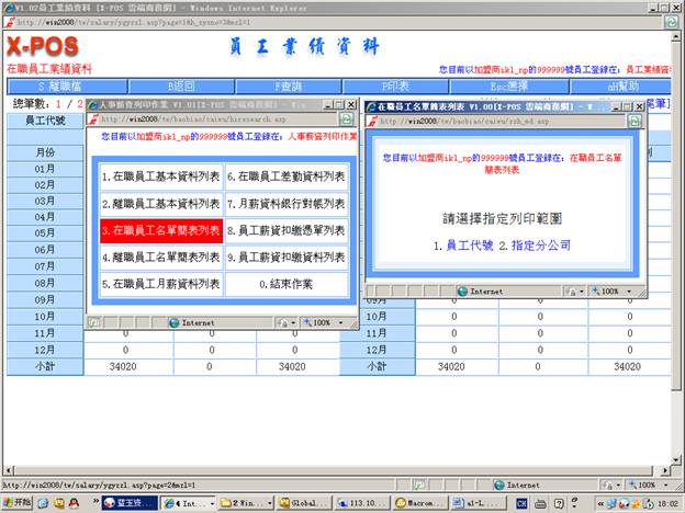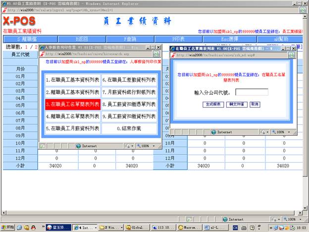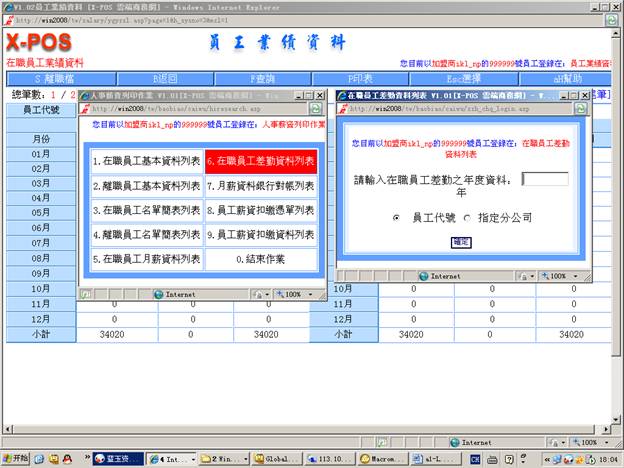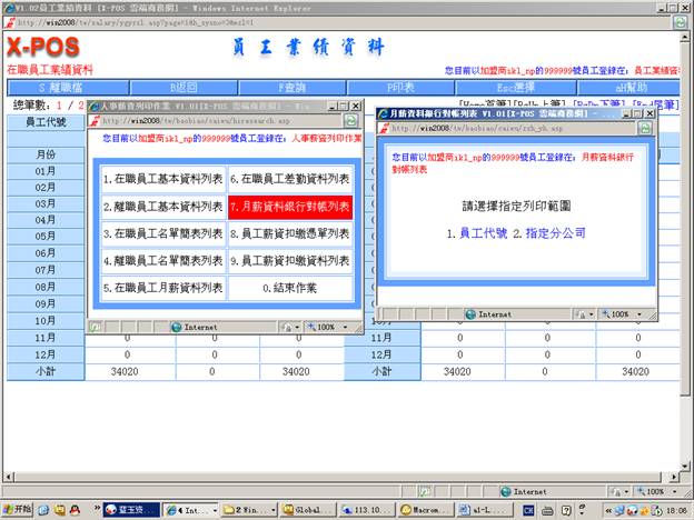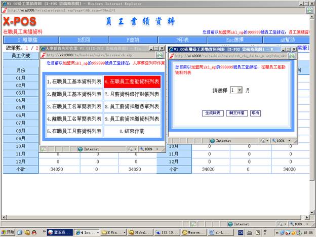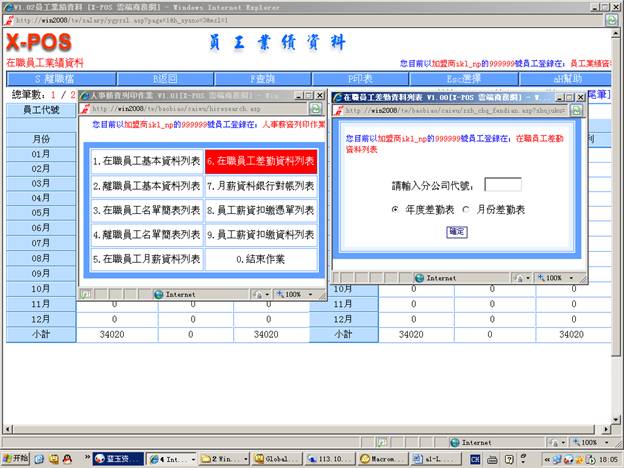 7-6-5.輸入分公司代號=》選擇“月份差勤表”=》