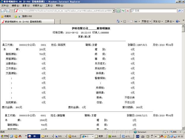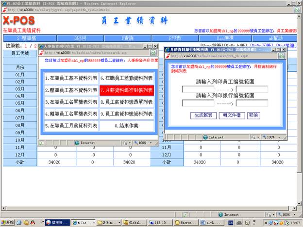 测试環境:員工業績資料,內網使用ikl_np用戶登錄。