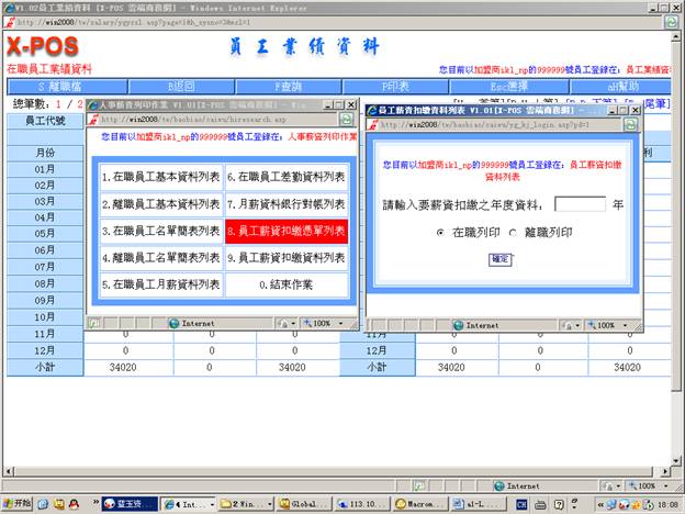 7-9-1. 輸入薪資扣繳年度=》選擇列印方式(選擇在職列印)=》點擊