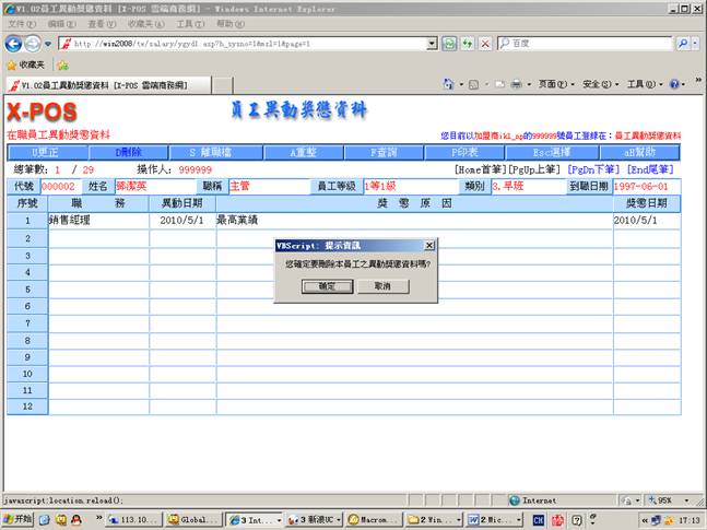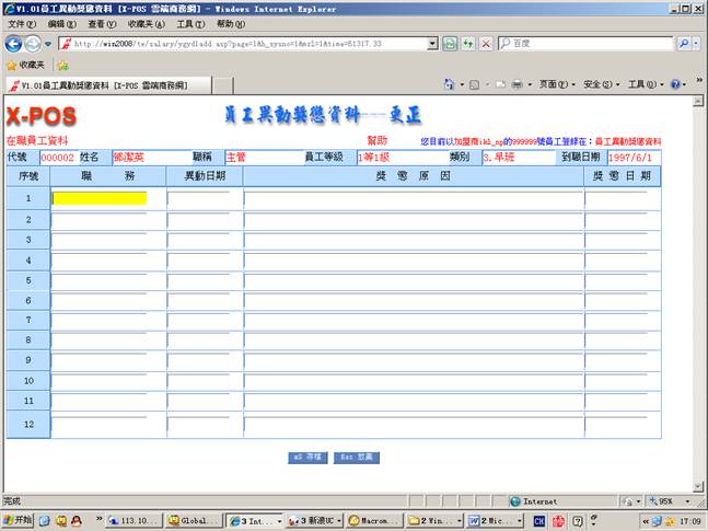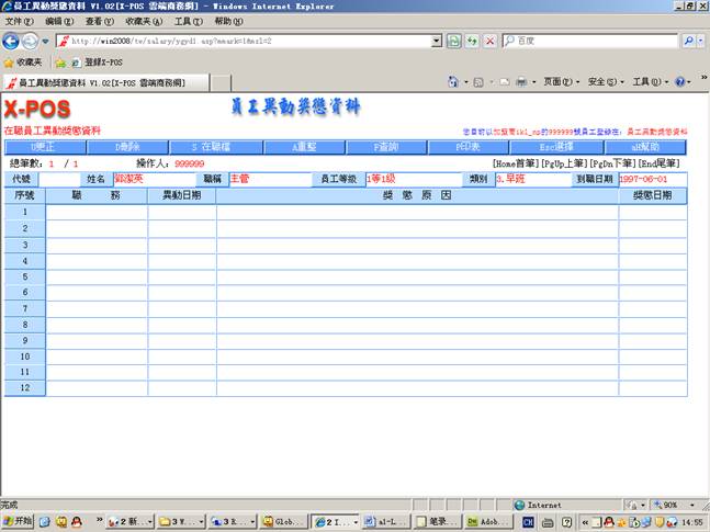 4-1. 更改當前員工的職務以及獎懲原因,更正後點擊