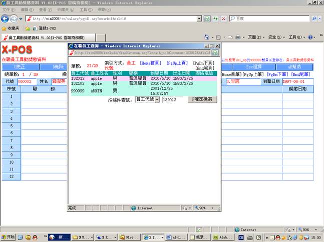 8-1. 選擇查詢條件(員工代號)=》輸入員工代號(123012)=》點擊