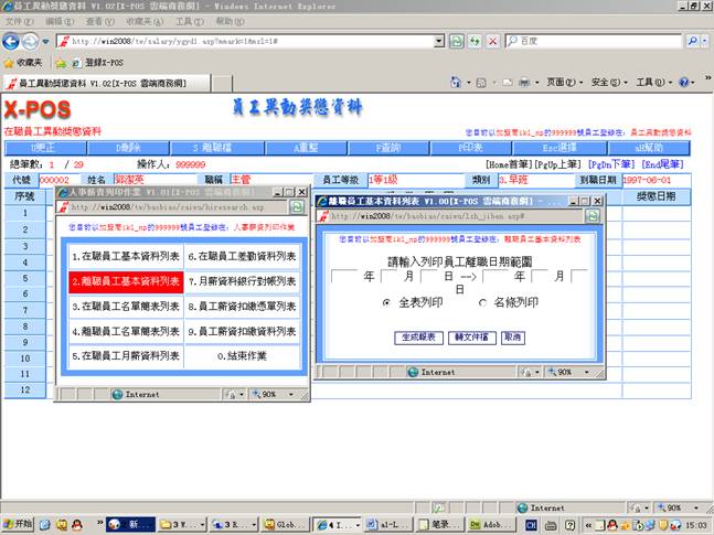 9-2-2. 輸入員工離職日期範圍;選擇列印方式(1.全表列印;2.名條列印);選擇
