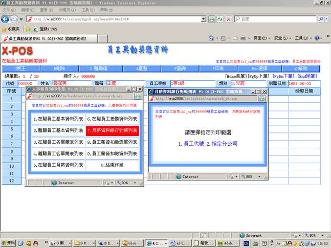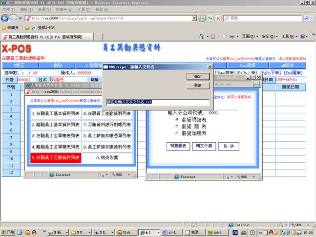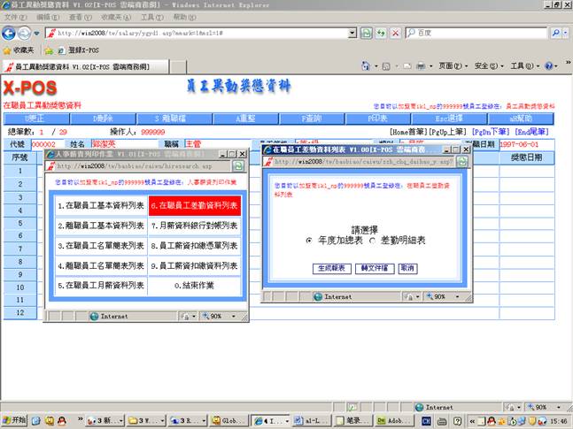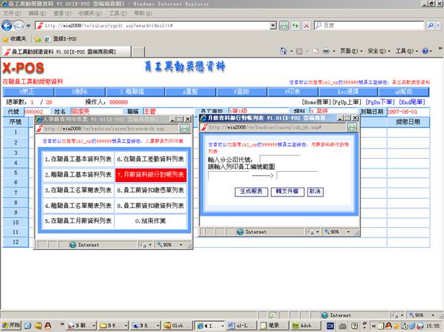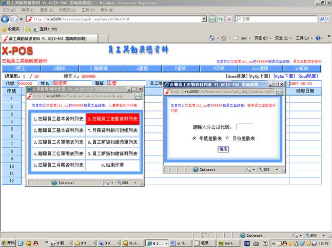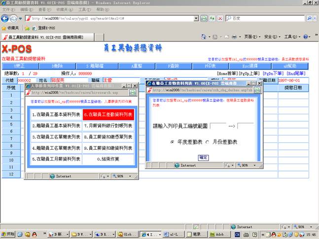 9-6-5.輸入分公司代號=》選擇“月份差勤表”=》
