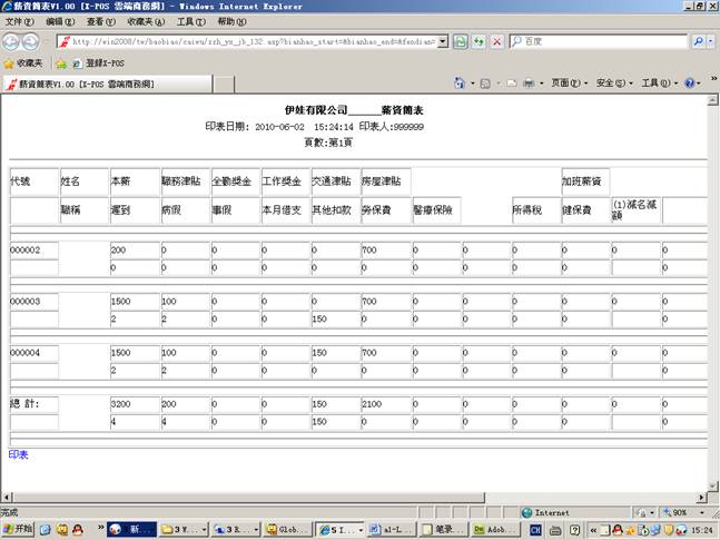9-5-1-I. 輸入分公司代號(0001)=》選擇薪資加總表(只印部門分析)=》點擊