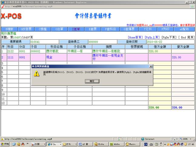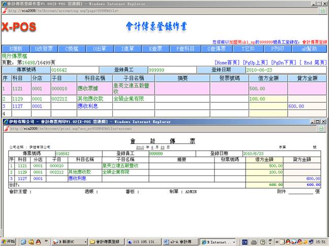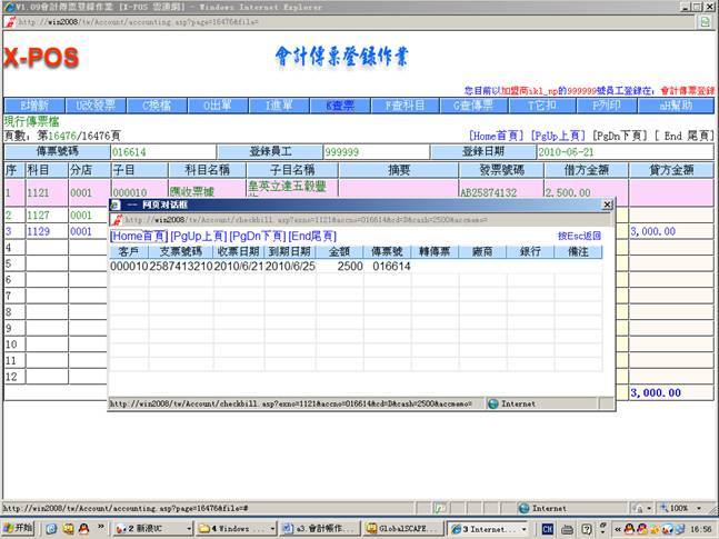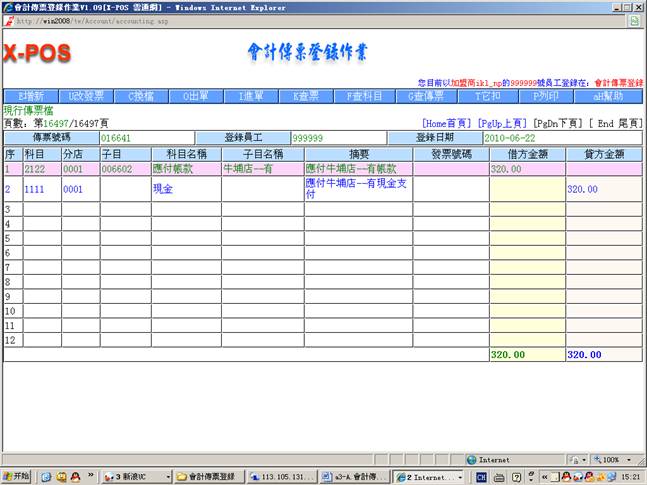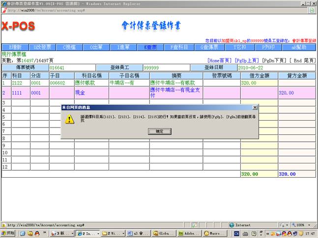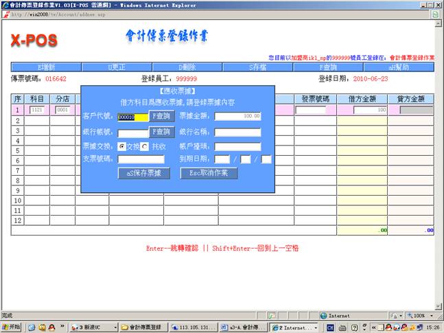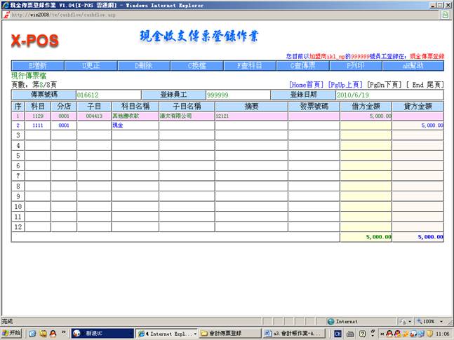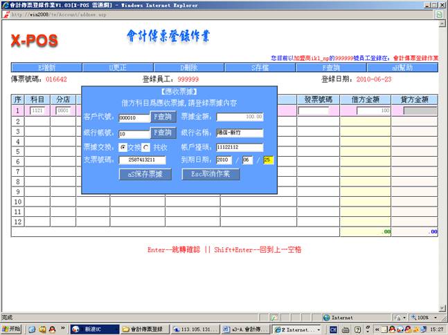 测试環境:會計傳票登錄,內網使用ikl_np用戶登錄。