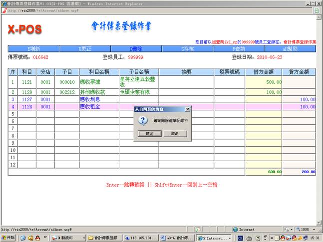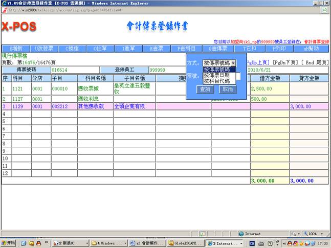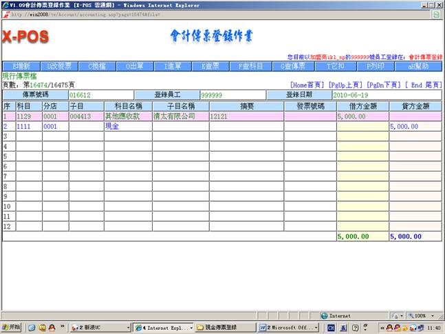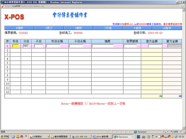 2.進入會計傳票登錄作業