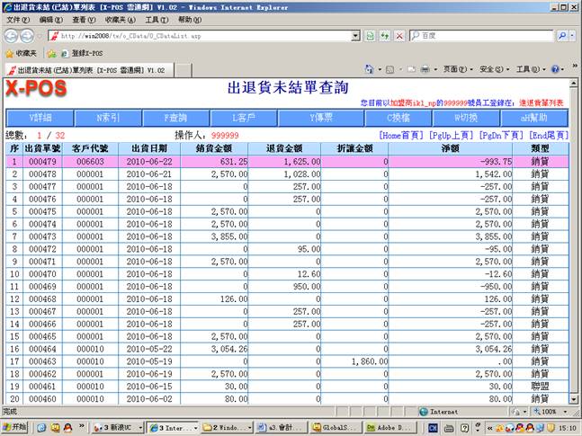 6-2.進入出退貨單查詢=》出退貨列表查找客戶代號006603