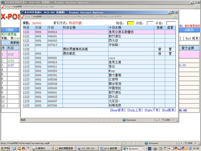 二. 會計傳票登錄測試內容索引: