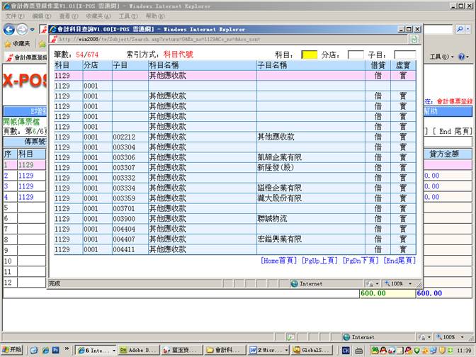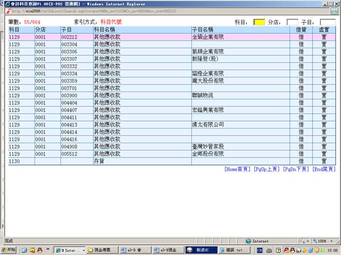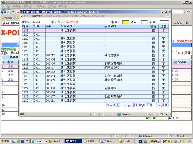 测试環境:會計科目資料,內網使用ikl_np用戶登錄。