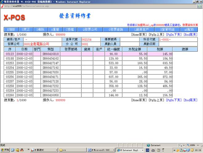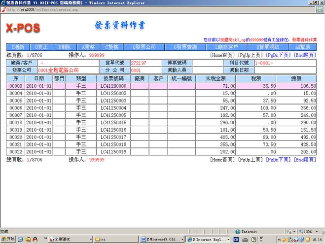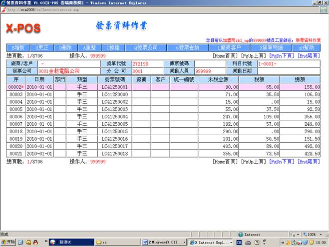 =》進入發票資料作業