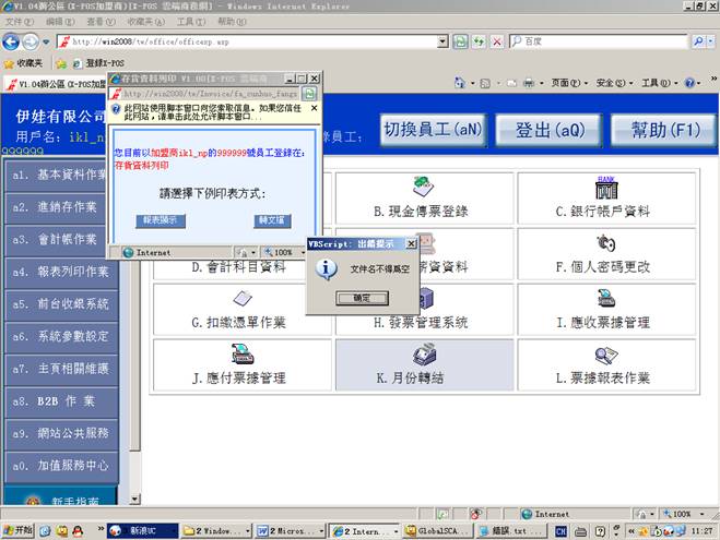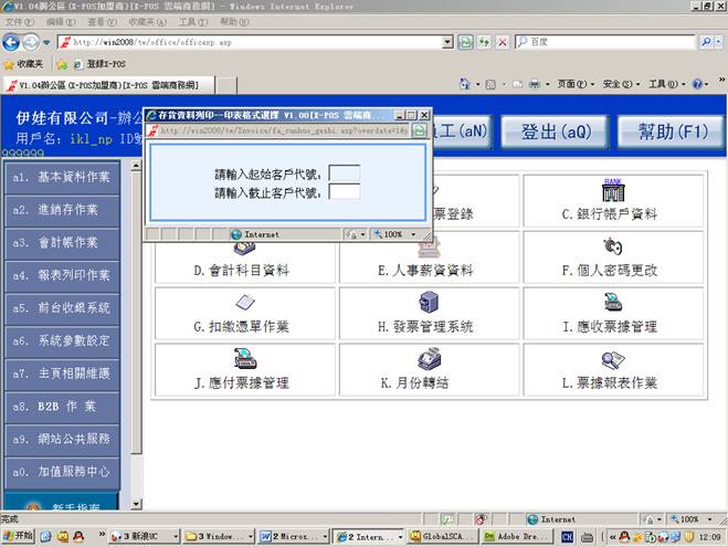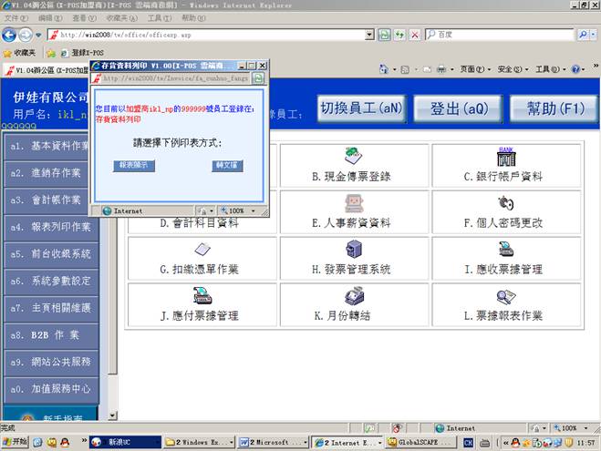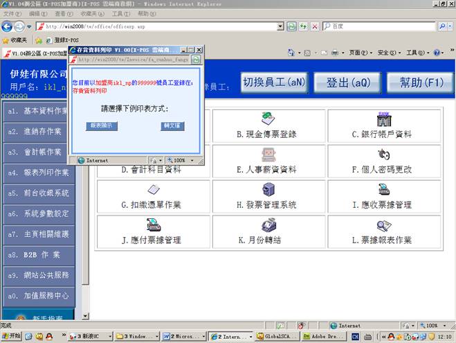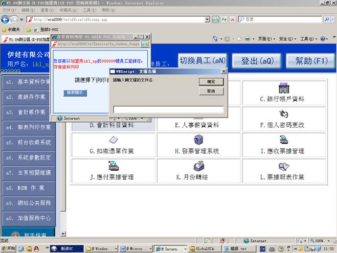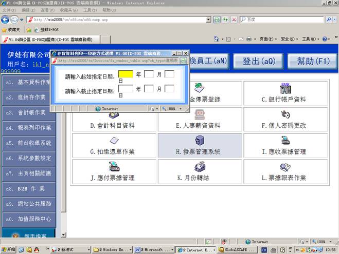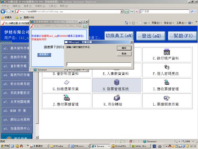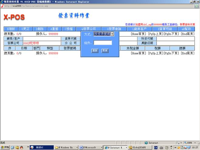 测试環境:發票管理系統,內網使用ikl_np用戶登錄。